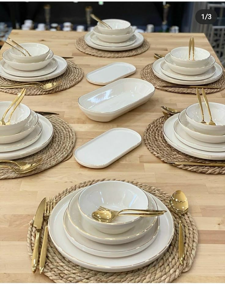“Refined ceramic dinner sets, crafted to bring timeless elegance and sophistication to your dining table”